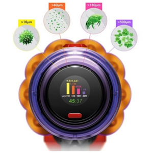 Son moteur numérique Dyson Hyperdymium™ délivre une puissance de 545 W, avec une autonomie jusqu’à 60 minutes. Les 11 cyclones Dyson séparent la poussière fine sans perte d’aspiration, tandis que le filtre HEPA capture 99,99 % des particules jusqu’à 0,3 micron — idéal pour les personnes allergiques.
