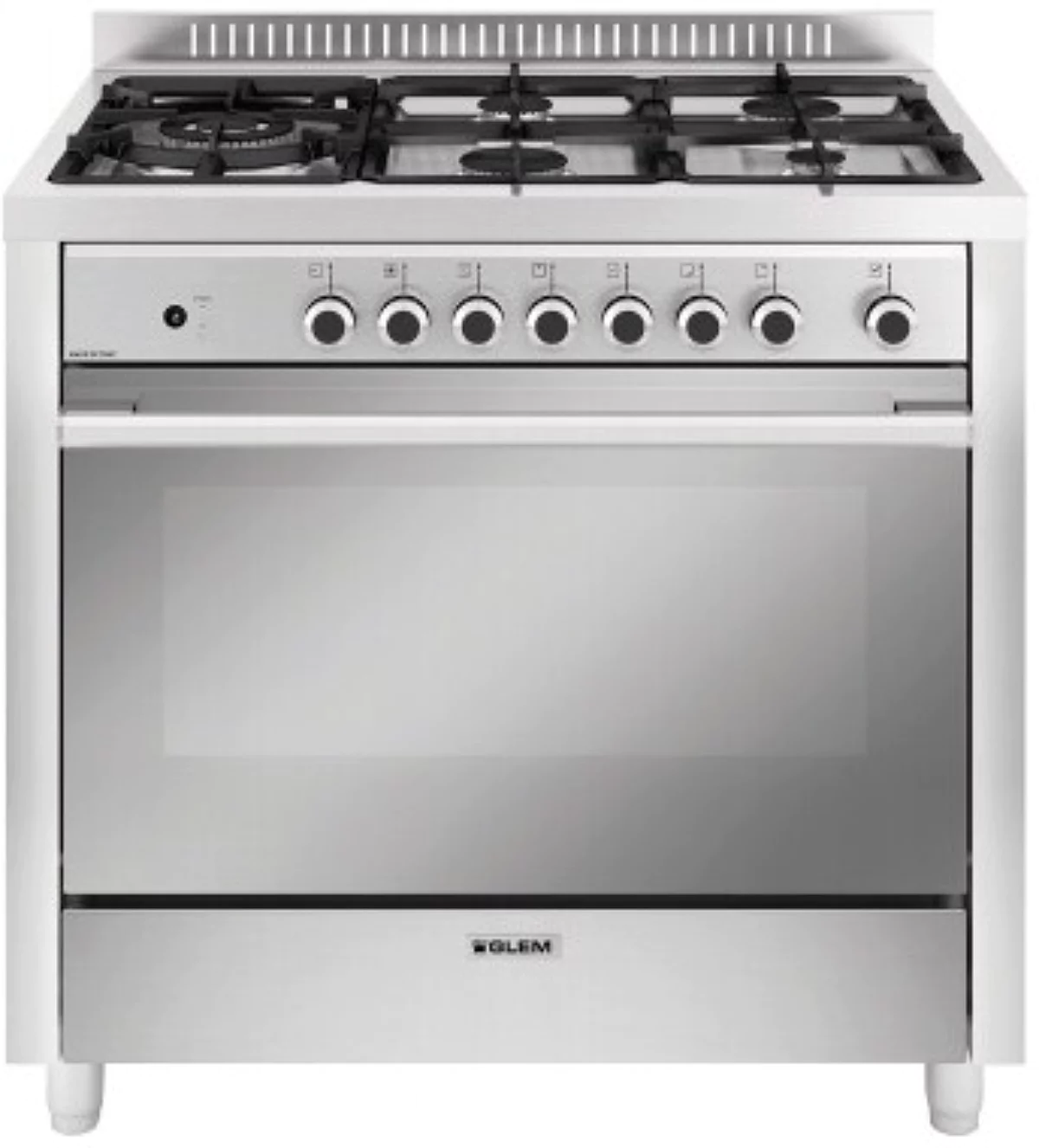 Cuisinière gaz Glem Gas GX960CVIX – 5 foyers, four 104 L chaleur tournante catalyse, sécurité thermocouple et design inox encastrable. Performante, robuste et élégante. Découvrez la qualité Glem Gas !