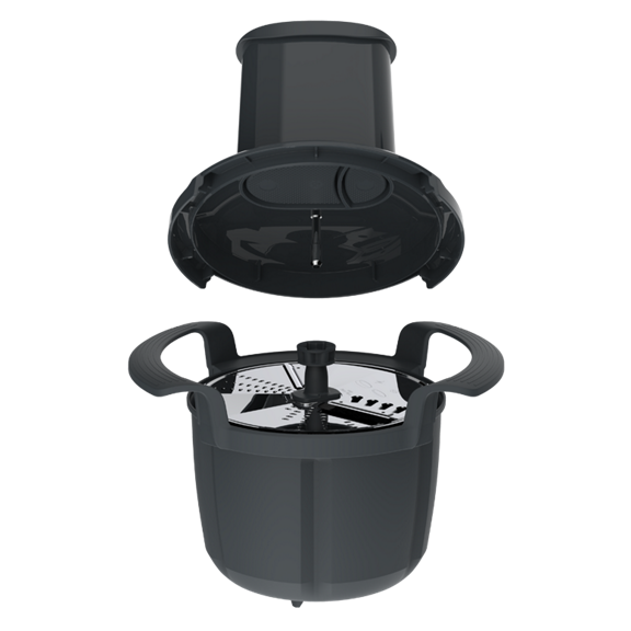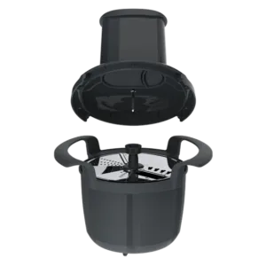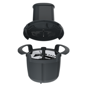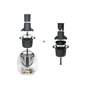 Le véritable génie de cet outil ? Son panier de découpe s’insère directement dans votre Thermomix®. Une fois vos légumes tranchés, retirez simplement l’axe : votre bol principal reste 100% propre et prêt à cuire le reste de votre recette ! De plus, l’ensemble des éléments passe directement au lave-vaisselle. C’est l’atout idéal pour manger sainement sans multiplier la vaisselle et la fatigue.