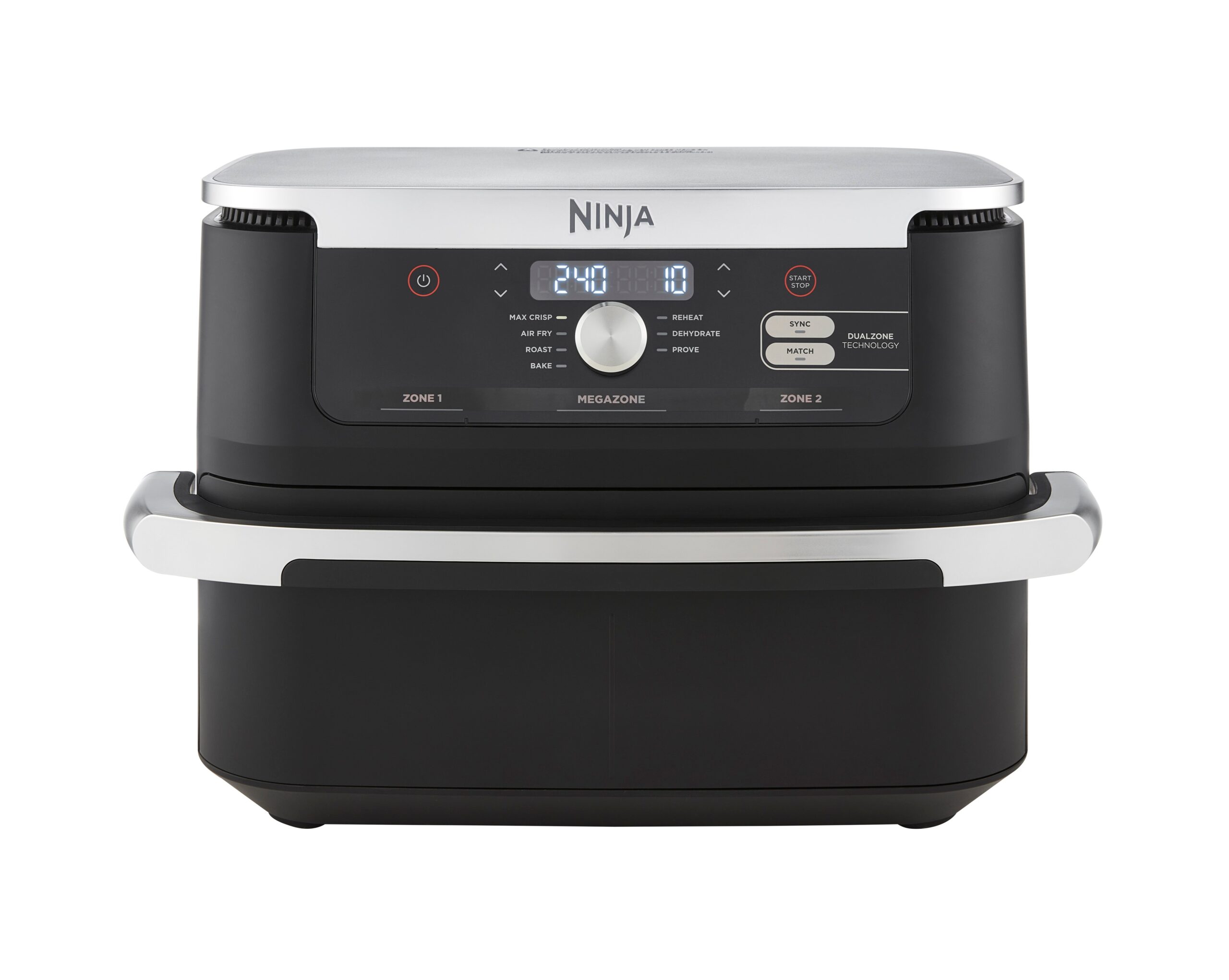 Ninja Foodi Flex AF500EU : friteuse sans huile 10,4 L, double cuve, 7 programmes, 40–240 °C. Cuisson synchronisée, économie d’énergie 45 %, facile à nettoyer.