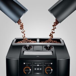 La JURA J8 twin Diamond Black est le chef-d’œuvre de l’ingénierie suisse. Elle redéfinit l’univers du café en intégrant deux broyeurs haute performance pour alterner instantanément entre deux variétés de grains, tout en proposant une mousse de lait subtilement aromatisée.