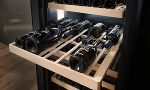 Ouvrez la porte en douceur grâce au mécanisme d’amortissement SoftSystem et admirez l’intérieur sublimé par un éclairage LED progressif et froid. Vos plus beaux flacons reposent délicatement sur de superbes clayettes en bois véritable, vous offrant un confort d’utilisation digne des plus grands sommeliers. Pour parfaire cette expérience luxueuse, votre investissement est totalement sécurisé : vous bénéficiez de notre essai de 30 jours sans risque, de la livraison et l’installation offertes par nos experts, ainsi que d’une garantie complète de 3 ans.