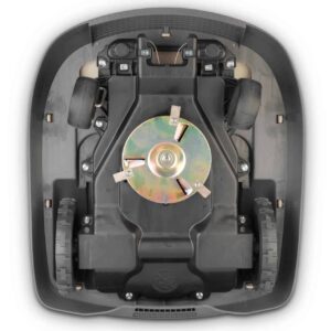Ce qui différencie véritablement le Miimo HRM310 de ses concurrents, c’est son système de coupe exclusif. Son palier rotatif est équipé de 3 lames rétractables percées d’orifices spécifiques. Cette ingéniosité crée un véritable effet « ventilateur » qui redresse chaque brin d’herbe juste avant le passage de la lame, garantissant une coupe d’une netteté absolue (22 cm de largeur). De plus, avec ses moteurs d’entraînement indépendants de 25W dans chaque roue, il arpente votre terrain avec une aisance déconcertante.