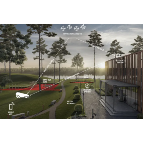 📡 Technologie EPOS (Sans fil) : Installation 100% virtuelle sans câble périphérique, permettant de gérer jusqu’à 20 zones de tonte indépendantes.